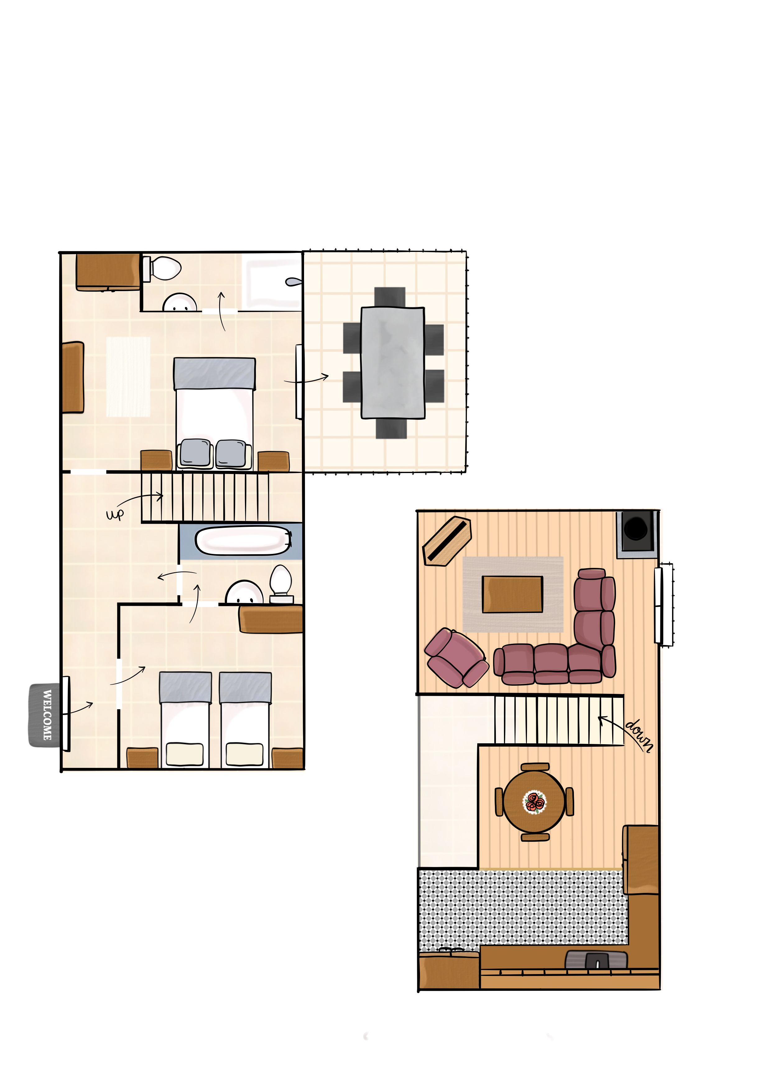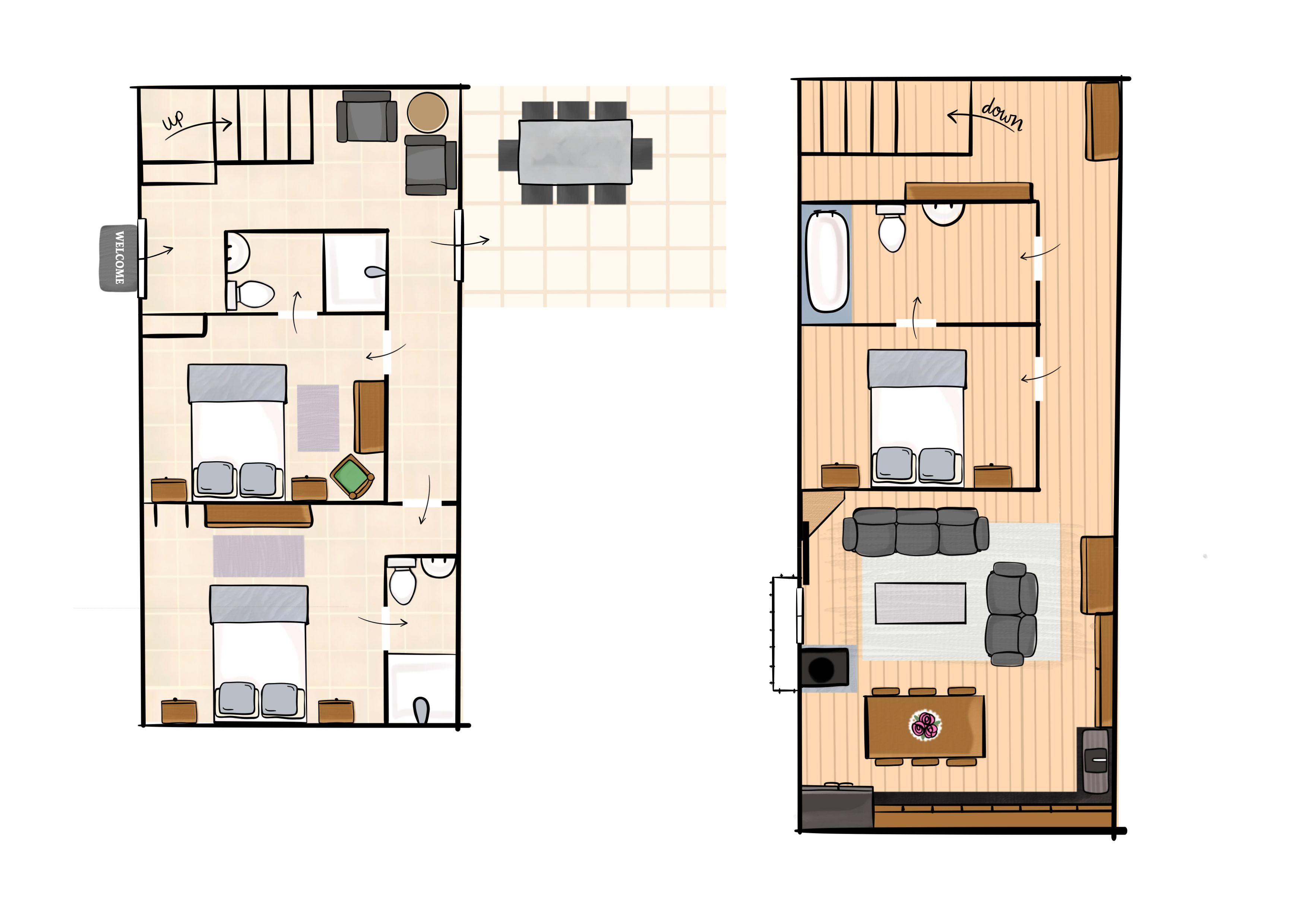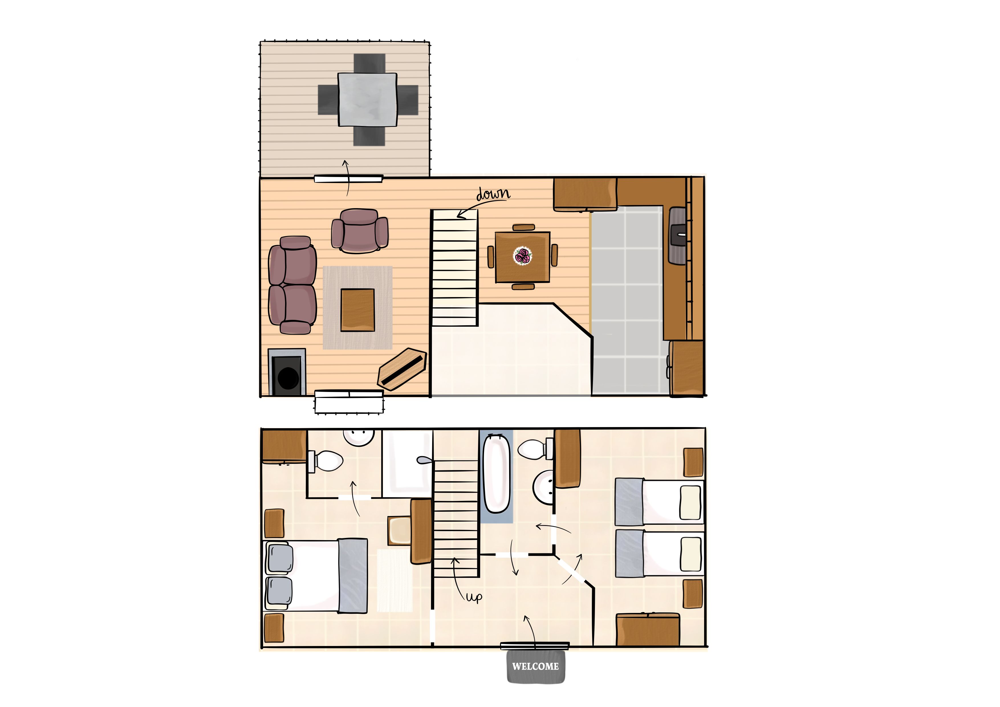Tressa is the third cottage in the courtyard and is a two-bedroom, two-bathroom cottage with an upstairs open plan living, dining and kitchen area. As...