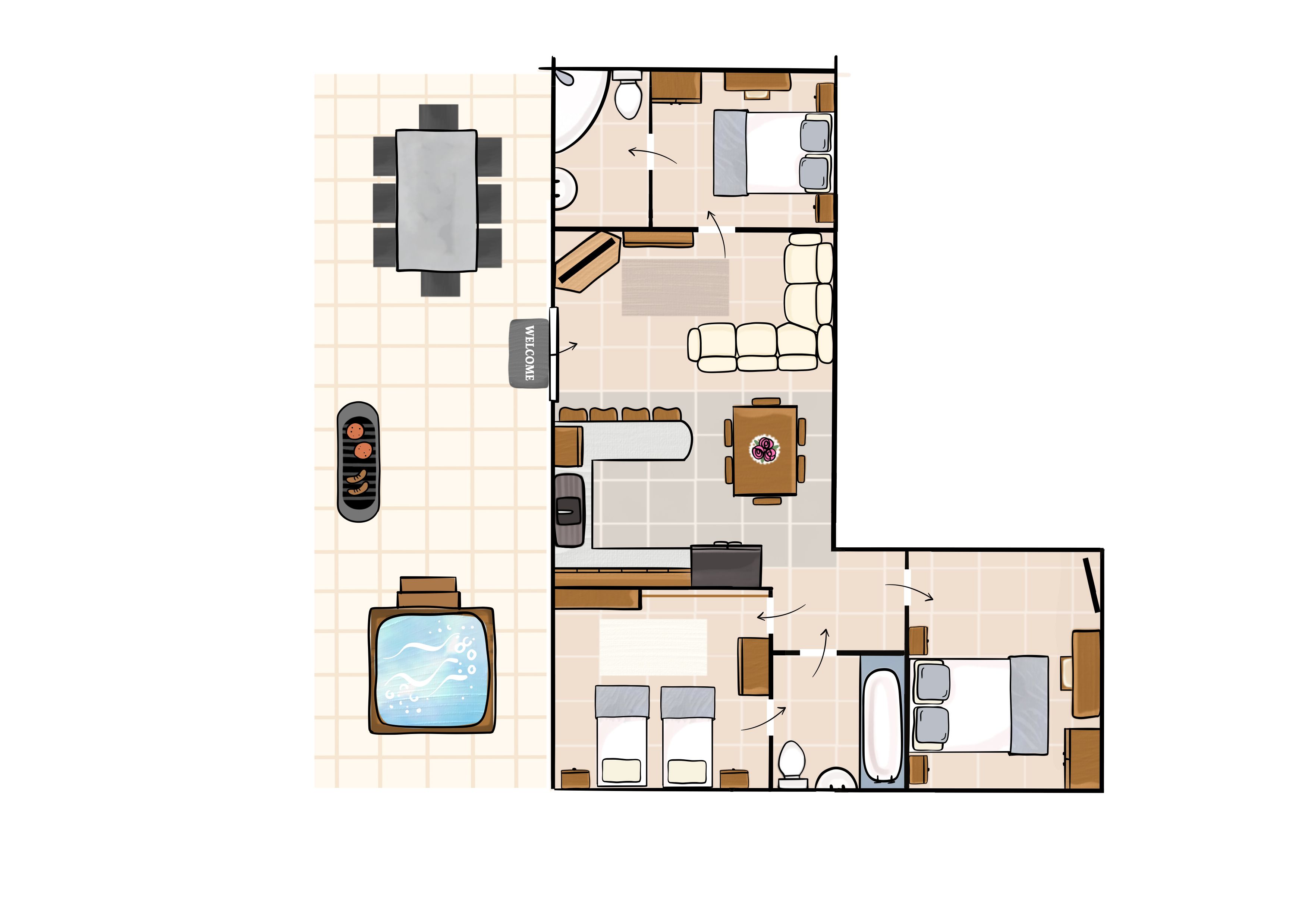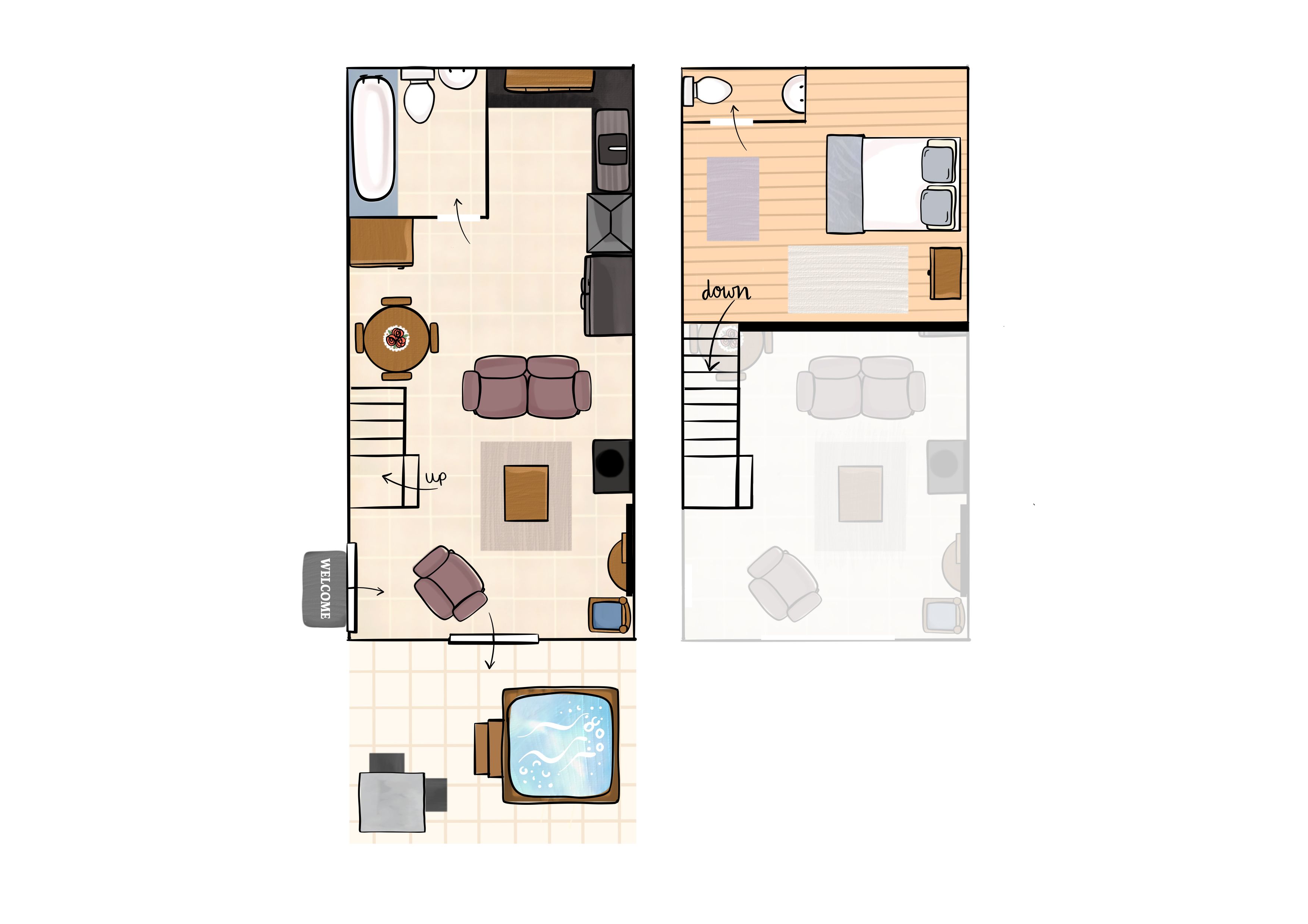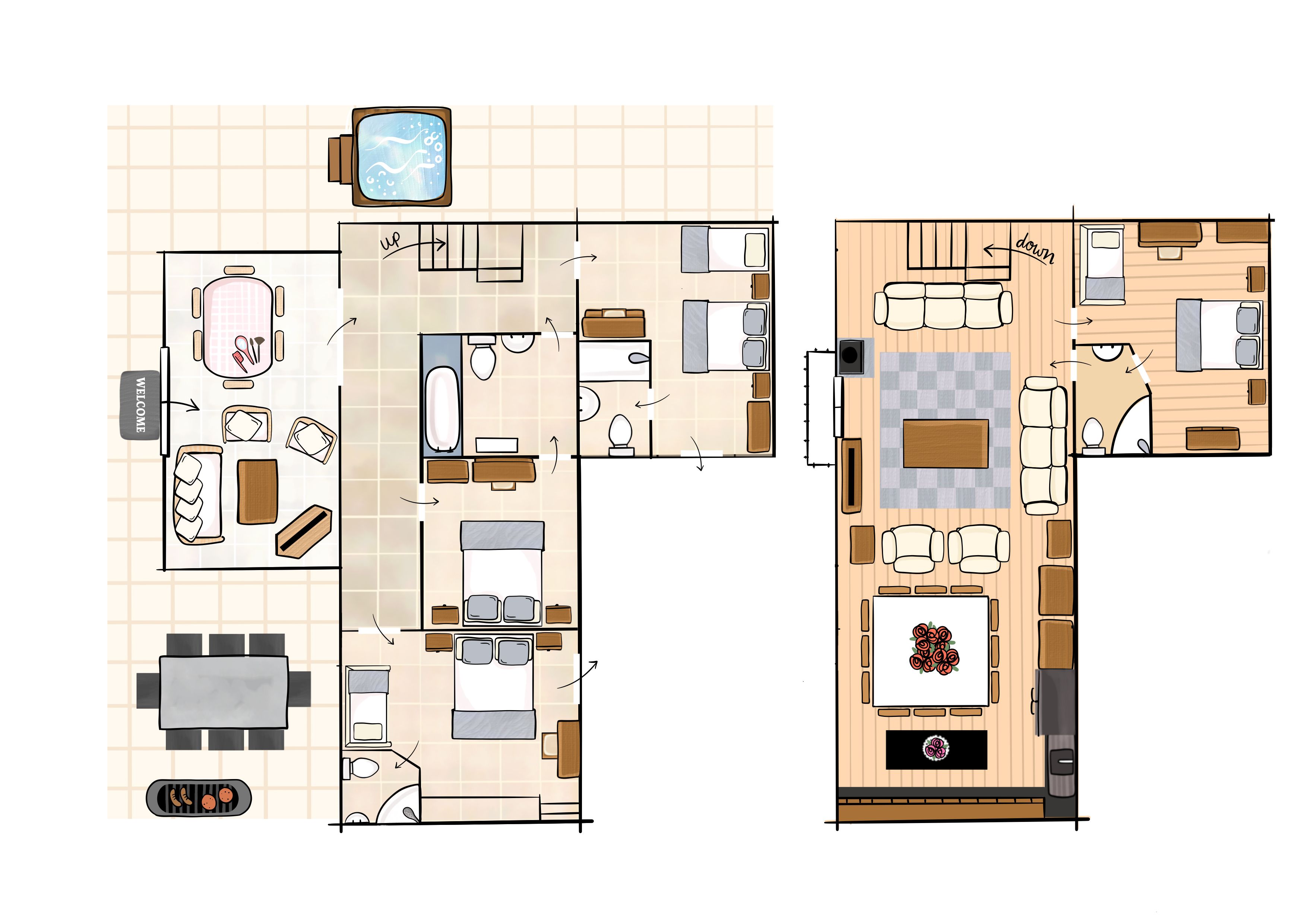 Tressa is the third cottage in the courtyard and is a two-bedroom, two-bathroom cottage with an upstairs open plan living, dining and kitchen area. As...