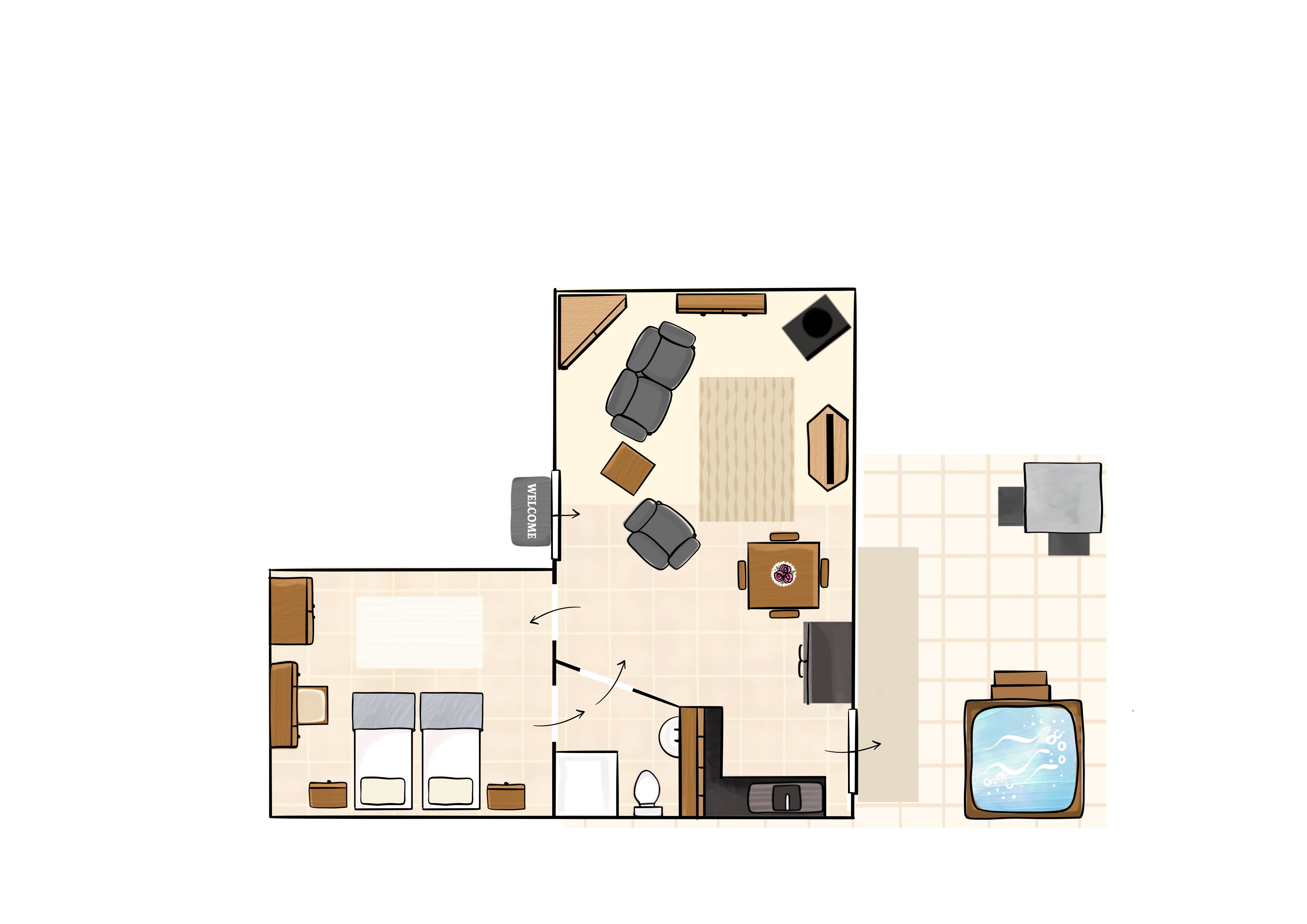 Kocha is a one-bedroom mezzanine style Cottage with an open plan living, dining and kitchen area. As you arrive in the Car Park, you walk through the ...